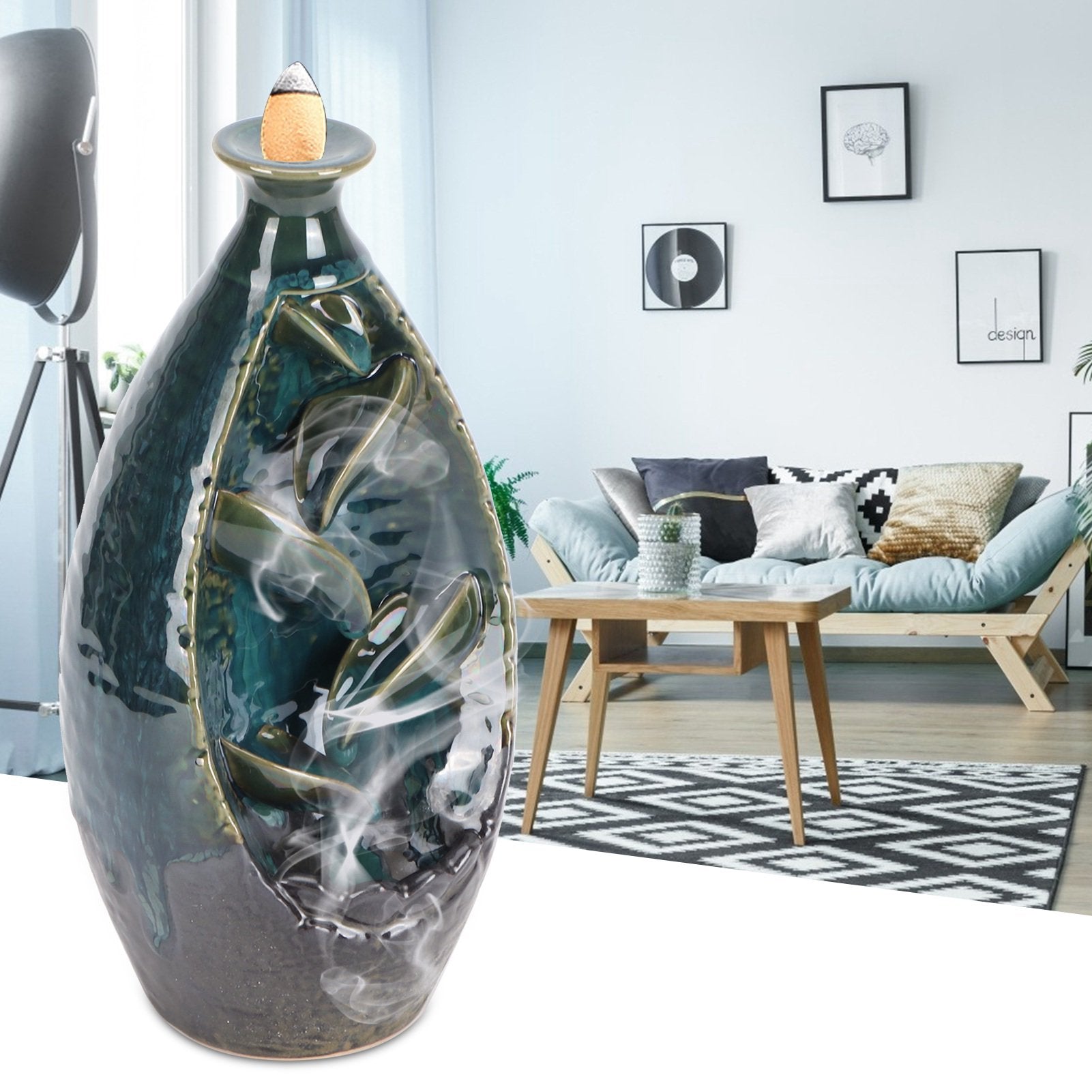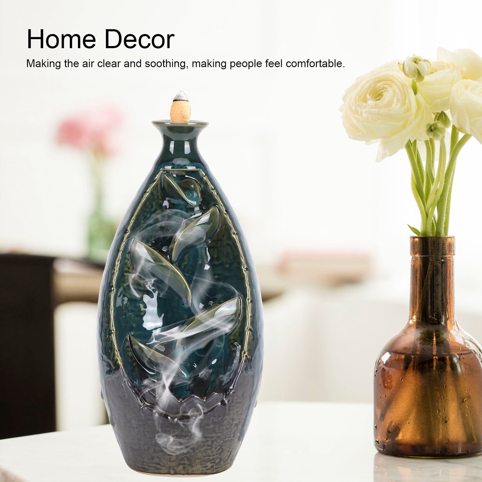 Enhance your environment with this Back-Flow Incense Holder, crafted from ceramic for durability. Accompanied by 10 mild scented incense cones, this holder facilitates optimal relaxation by creating a tranquil atmosphere through flowing smoke. Experience a unique sensory experience that promotes calmness and focus.