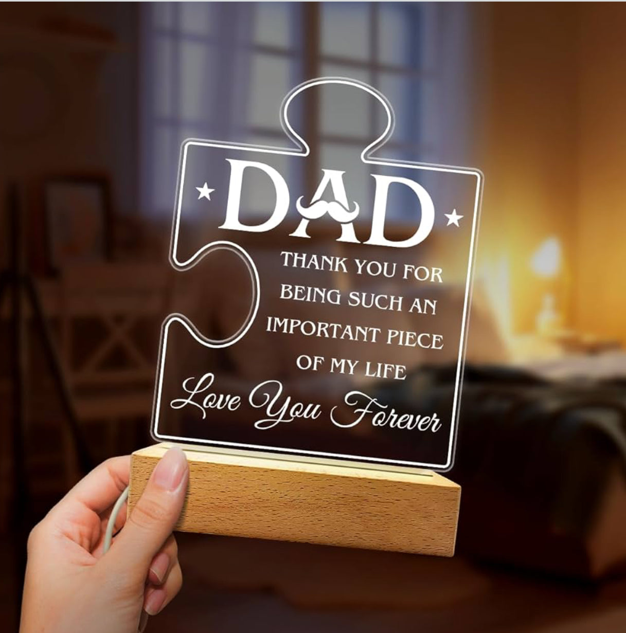 Father’s Love 3D Acrylic Night Lamp With Wooden Base - Puzzle Design