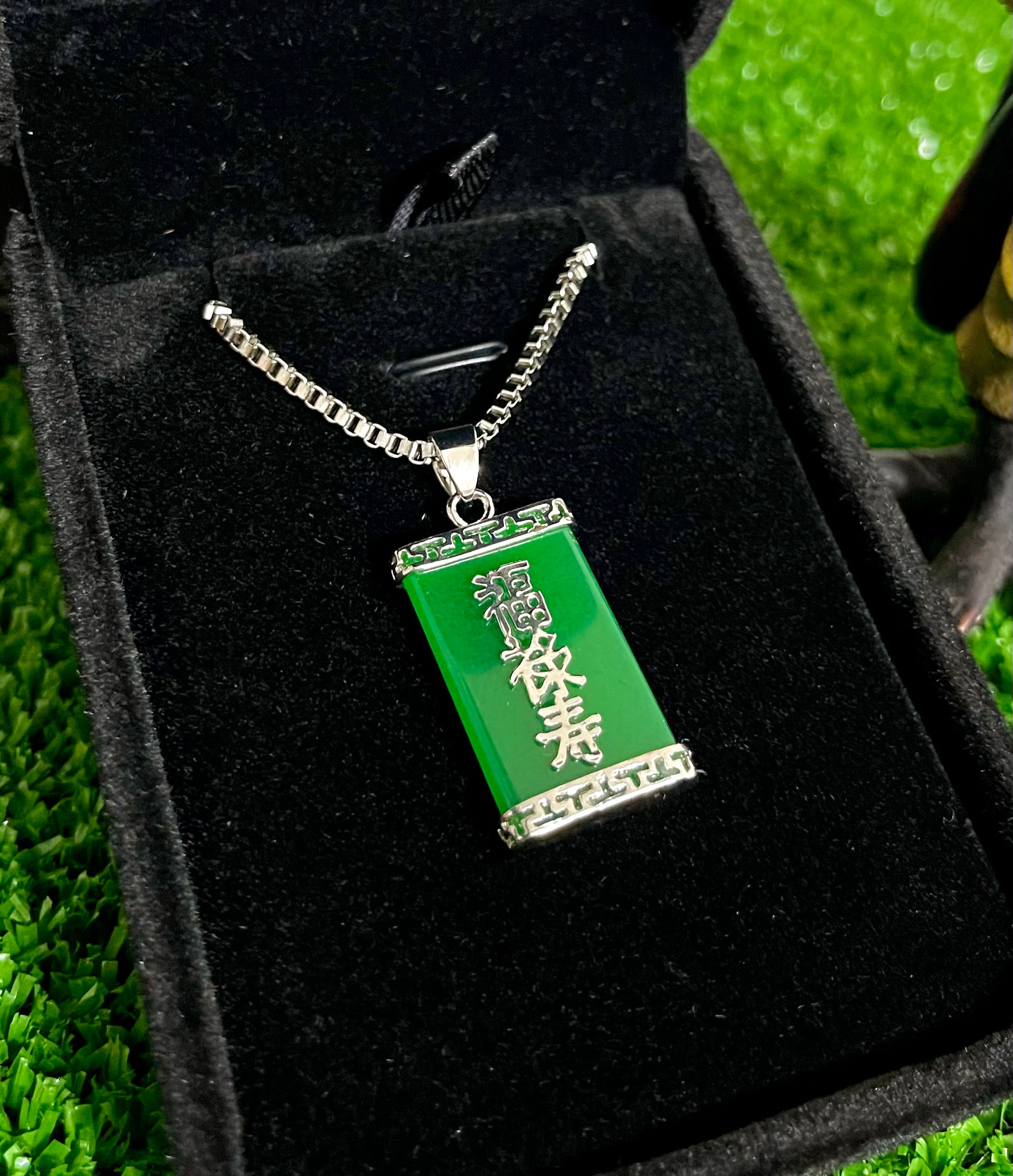 Blessings abound with our "Happiness, Wealth & Long Life" Blessing Jade Necklace. Crafted with high quality jade and a durable stainless steel chain, this spiritual gift is suitable for both men and women. Wear it for good luck and positive energy.