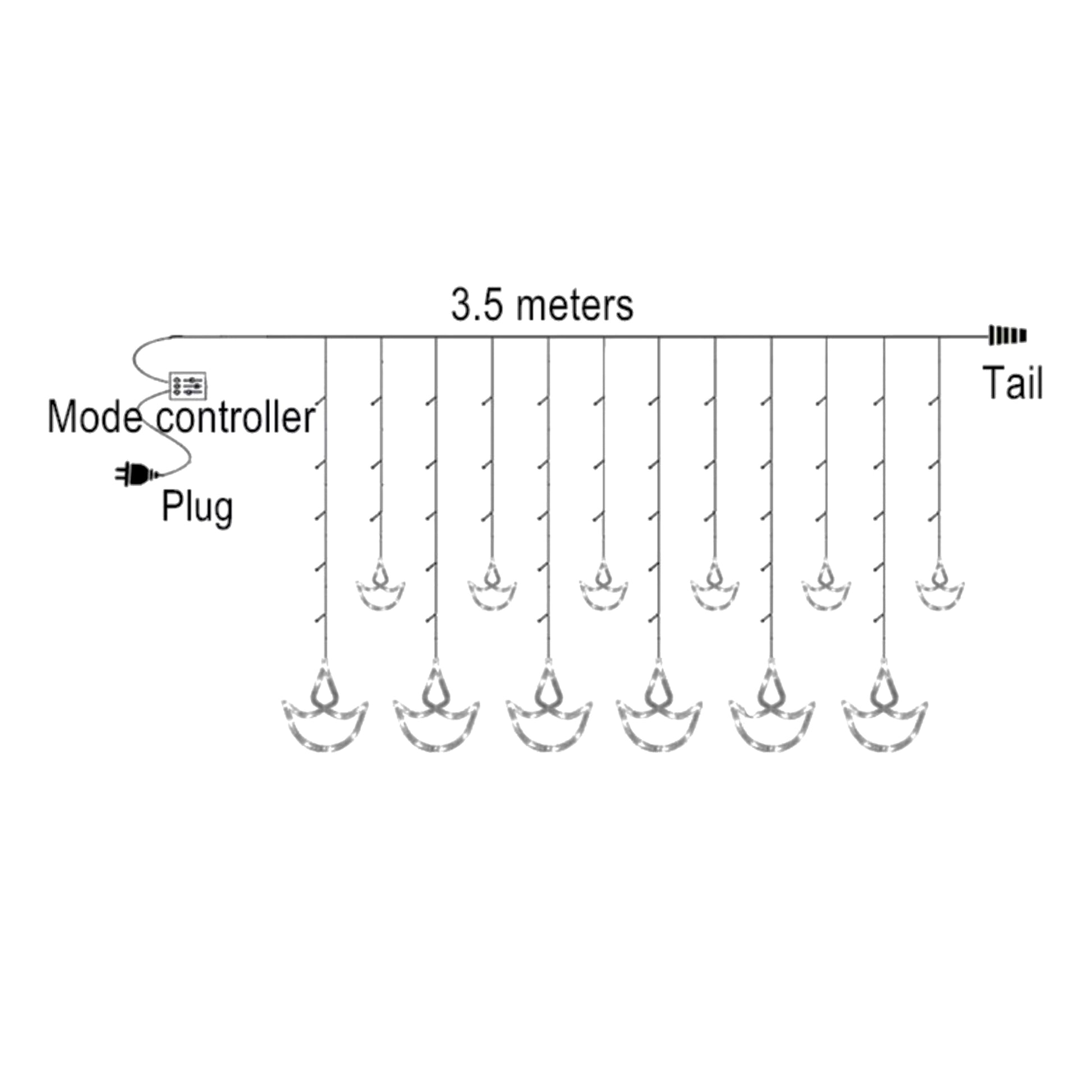 Enhance the ambiance of your home during Hindu celebrations with our Hindu Deya Curtain LED String Lights. Featuring a beautiful deya pattern, these lights add a touch of sophistication to any occasion. Stand out with our versatile LED string lights, powered by either USB plug in or battery holder. The perfect addition to any Hindu festival decor.