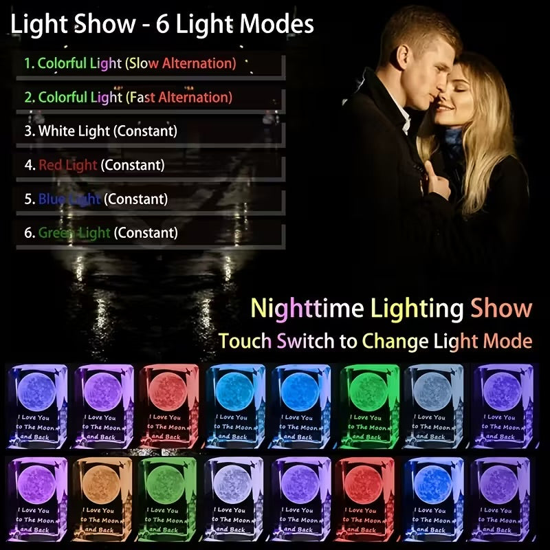 Celebrate your love with the stunning K9 Glass Crystal 3D Laser Engraved Moon Lamp. This exquisite lamp features a beautiful "I love you to the moon and back" design, making it the perfect gift for that special someone. Crafted with precision, this lamp will illuminate any room with a romantic glow.