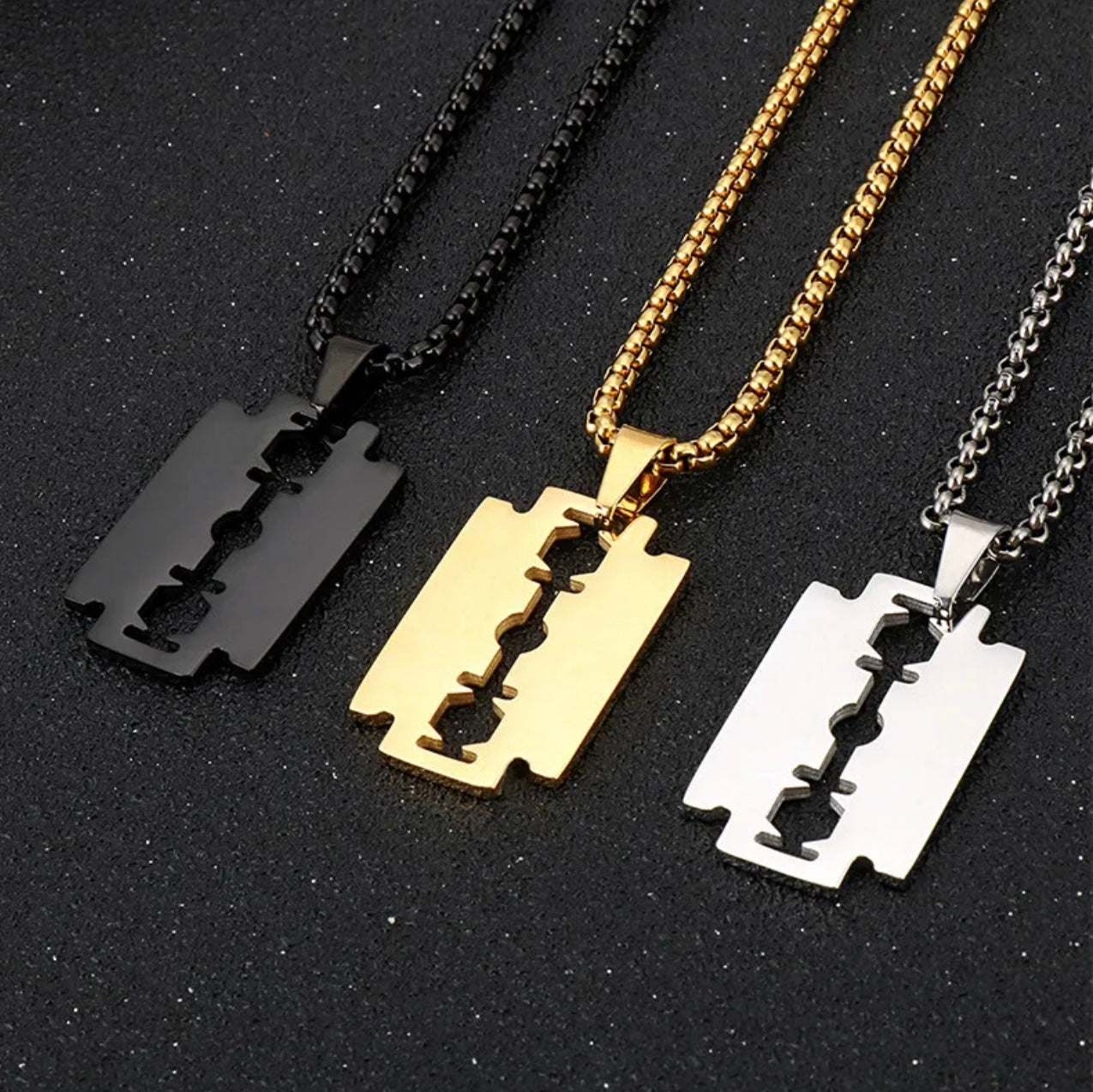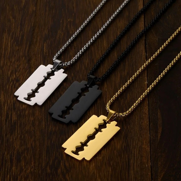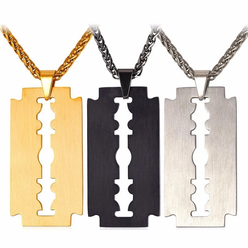 This high quality stainless steel razor blade designed necklace is the perfect accessory for those seeking a unique and cool look. Made with durable materials, it is built to last and add an edge to any outfit. A must-have for fashion-forward individuals.